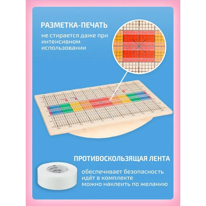 - На верхнюю часть доски нанесена нестираемая наклейка с разметкой. При желании можно наклеить противоскользящую ленту — она есть в комплекте.