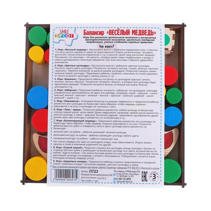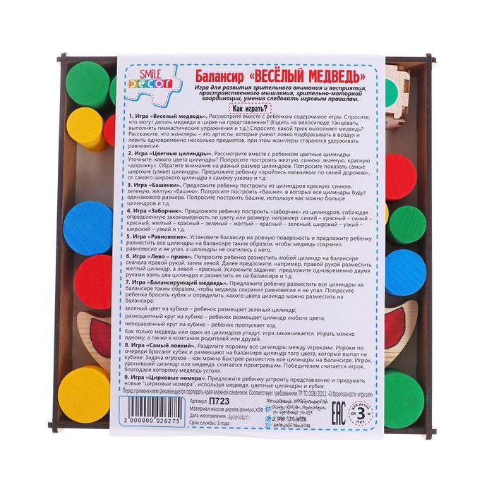 Балансир «Весёлый медведь» — это игра для развития зрительного внимания и восприятия, пространственного мышления, зрительно-моторной координации, умения следовать игровым правилам.