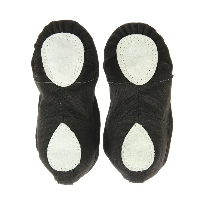 Балетки подходят для занятий танцами, гимнастикой и спортом. Вставки на подошве из натуральной кожи не скользят на гладком паркете и обеспечивают хорошее сцепление с площадкой. Балетки держатся на ноге с помощью небольших резиночек. Обувь на тканевой основе плотно прилегает к ноге и в то же время не сковывает движений. Нейтральный цвет подойдёт любому костюму.