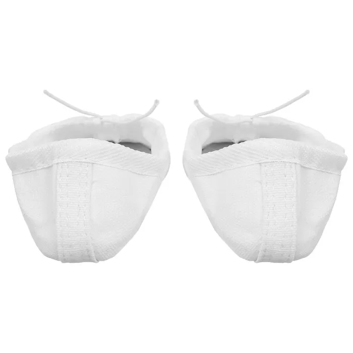 Балетки подходят для занятий танцами, гимнастикой и спортом. Вставки на подошве из натуральной кожи не скользят на гладком паркете и обеспечивают хорошее сцепление с площадкой. Балетки держатся на ноге с помощью небольших резиночек. Обувь на тканевой основе плотно прилегает к ноге и в то же время не сковывает движений. Нейтральный цвет подойдёт любому костюму.
