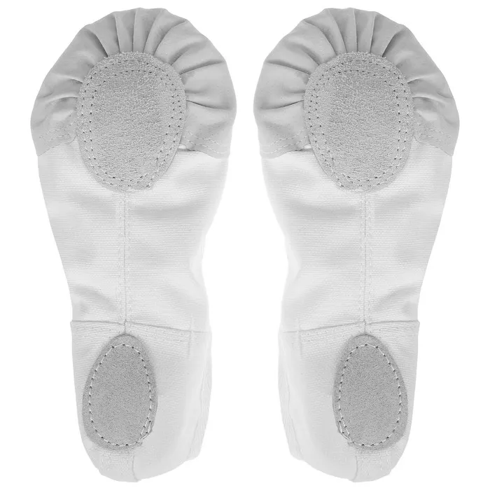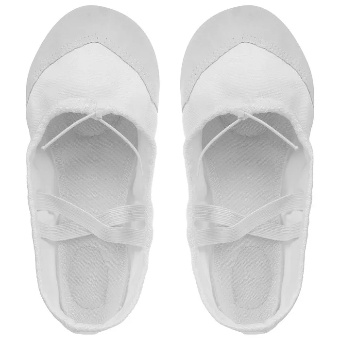 Балетки подходят для занятий танцами, гимнастикой и спортом. Вставки на подошве из натуральной кожи не скользят на гладком паркете и обеспечивают хорошее сцепление с площадкой. Балетки держатся на ноге с помощью небольших резиночек. Обувь на тканевой основе плотно прилегает к ноге и в то же время не сковывает движений. Нейтральный цвет подойдёт любому костюму.