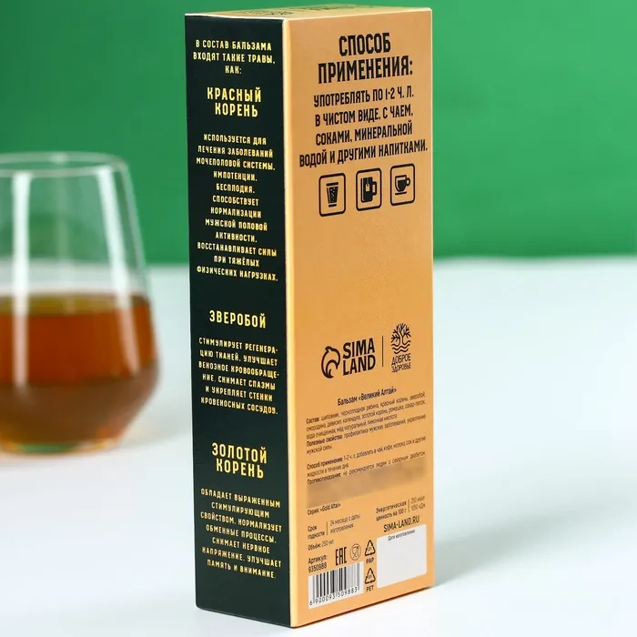 Бальзам «23 февраля»: красный корень, зверобой, золотой корень, шиповник, смородина, календула, ромашка, 250 мл. — Характеристики
