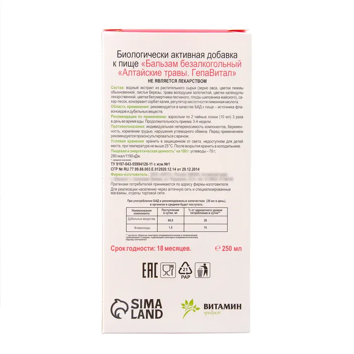 Благодаря богатому составу бальзам сибирский «Гепавитал» способствует нормализации функций печени и желчных путей, стимулирует обменные процессы. Принимают в качестве вспомогательного средства при: профилактике заболеваний печени, желчного пузыря, ЖКТ и поджелудочной железы. Обладает противовоспалительным и мягким мочегонным действием, способствует стимуляции деятельности печени, желчных путей, ЖКТ, поджелудочной железы.