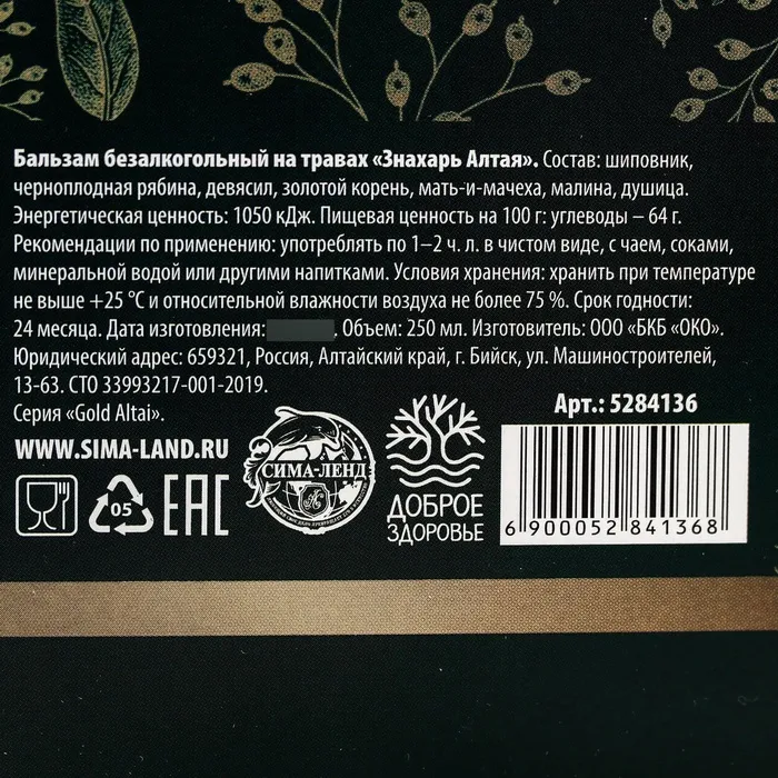 Бальзам – безалкогольный настой на травах горного Алтая. Это полезная добавка к вашему ежедневному рациону.