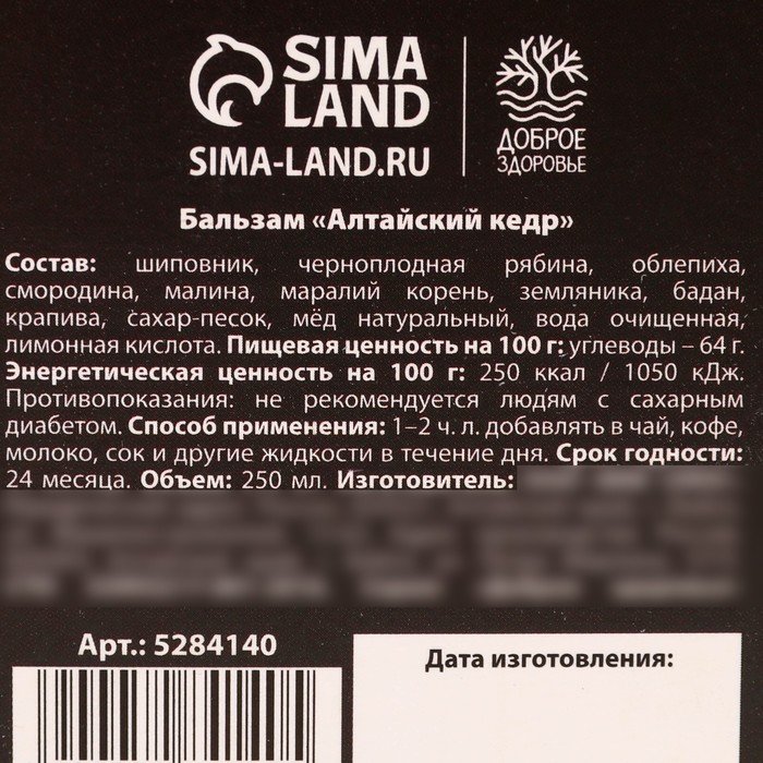 Бальзам безалкогольный на травах «Витаминный»: маралий корень, бадан, в пластиковой бутылке, 250 мл — Характеристики