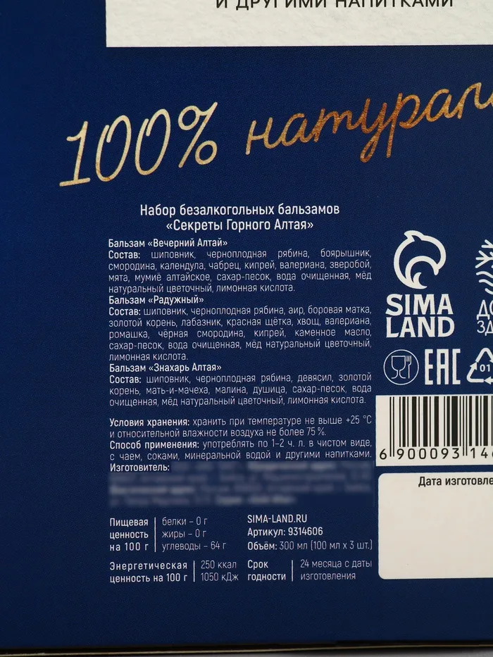Бальзам безалкогольный «Секреты горного алтая», набор 3 шт. х 100 мл. — Характеристики