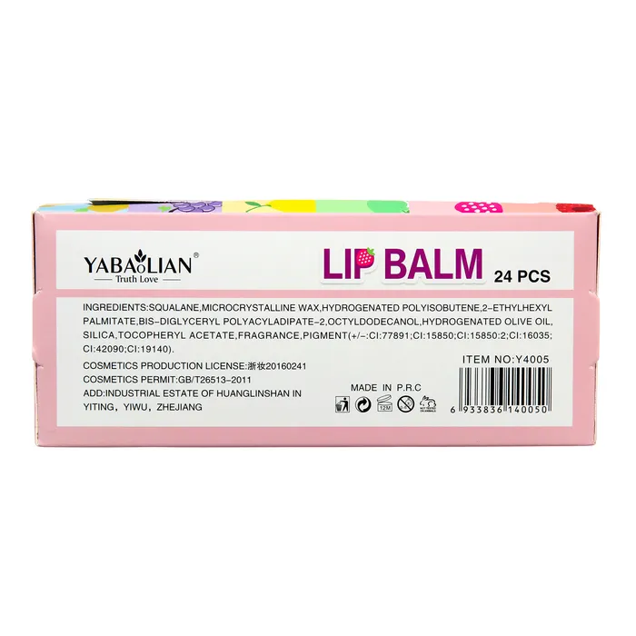 Состав: пальмитиновая кислота, этилгексиловый эфир, минеральное масло, чистый парафин, пчелиный воск свечной воск, полиизобутилен, масло какао, масло ши, ацетат токоферола (Витамин Е), этилгексилглицерин октиликоль, ароматизатор, Cl77007, C77288, Cl 47005:1, CI15850:2, Cl42090:2, Cl45410:2.