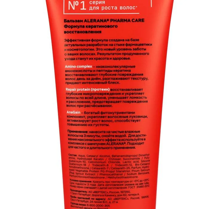 Содержит низкомолекулярные аминокислоты и пептиды кератина. Помогает восстановить глубокие повреждения волос, вернуть им естественную гибкость, разглаживает текстуру и придает естественный блеск.