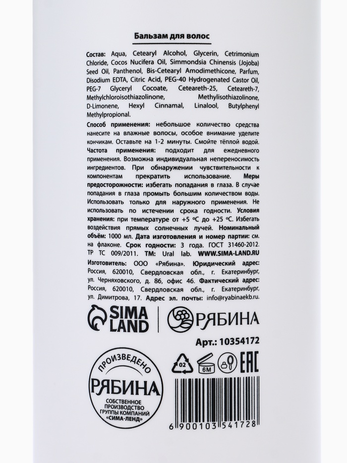 Состав: Aqua, Cetearyl Alcohol, Glycerin, Cetrimium Chloride, Cocos Nucifera Oil, Simmondsia Chinensis (Jojoba) Seed Oil, Panthenol, Bis-Cetearyl Amodimethicone, Parfum, Disodium EDTA, Citric Acid, PEG-40 Hydrogenated Castor Oil, PEG-7 Glyceryl Cocoate, Ceteareth-25,Ceteareth-7, Methylchloroisothiazolinone, Methylisothiazolinone, D-Limonene, Hexyl Cinnamal, Linalool, Butylphenyl Methylpropional