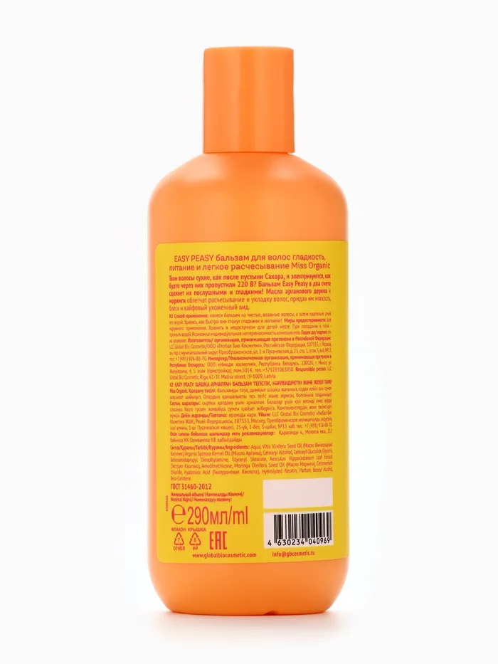 Состав: Aqua, Vitis Vinifera Seed Oil (Масло Виноградных Косточек), Argania Spinosa Kernel Oil (Масло Арганы), Cetearyl Alcohol, Cetearyl Glucoside, Glycerin, Behenamidopropyl Dimethylamine, Glyceryl Stearate, Аesculus Hippocastanum Leaf Extract (Экстракт Каштана), Amodimethicone, Moringa Oleifera Seed Oil (Масло Моринги), Cetrimonium Chloride, Hyaluronic Acid (Гиалуроновая Кислота), Hydrolyzed Keratin, Parfum, Benzyl Alcohol, Beta-Karotene.