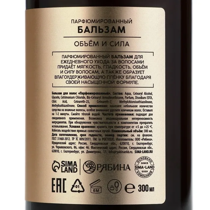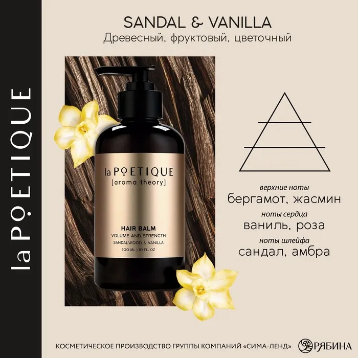 Бальзам для волос, объём и сила, 300 мл, аромат сандала и ванили, LA POETIQUE — Характеристики