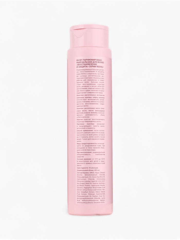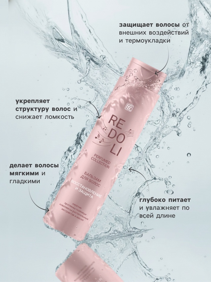 Бальзам «Восстановление и защита» серии REDOLI создан для ухода за окрашенными и поврежденными волосами. Средство увлажняет и питает, облегчает расчесывание, возвращает локонам блеск и шелковистость, а также дарит волосам утончённый аромат шафрана и ветивера.