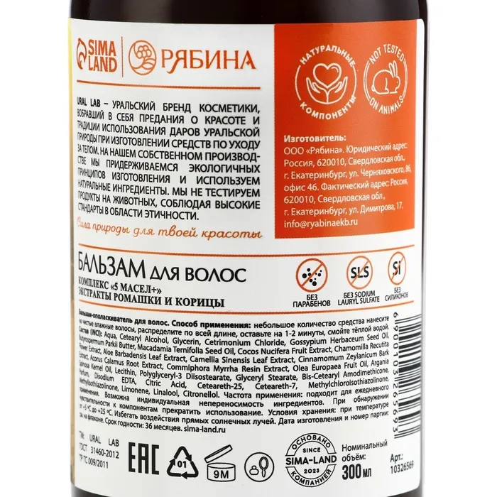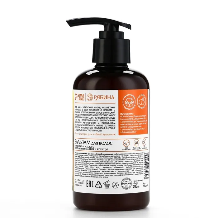 Бальзам для волос с экстрактом ромашки и корицы, интенсивное питание, 300 мл, ECO LAB by URAL LAB — Характеристики