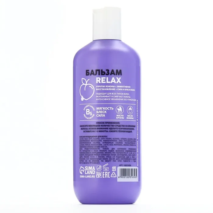 Бальзам для волос с маслом арганы и жожоба, гипер-увлажнение, 400 мл, PICO MICO — Характеристики