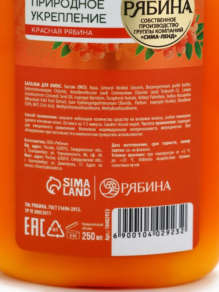 Состав: Aqua, Cetearyl Alcohol, Glycerin, Butyrospermum parkii butter, Behentrimmonium Chloride, Amodimethicone (and) Cetrimonium, Chloride (and) Trideceth-12, Linum Usitatissimum (Linseed) Seed Oil, Isopropyl Myristate, Tocopheryl Acetate, Retinyl Palmitate, Sorbus Aucuparia (Mountain Ash) fruit Extract, Guar Hydroxypropyltrimonium Chloride, Parfum, Isopropyl Alcohol, Disodium EDTA, BHT, Citric Acid, Methylchloroisothiazolinone, Methylisothiazolinone