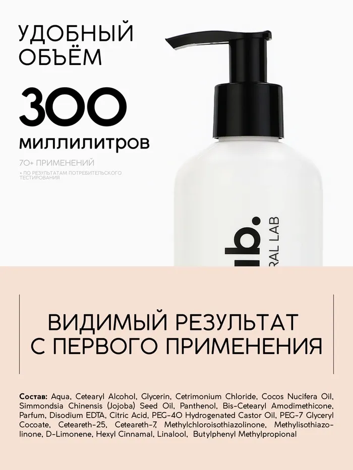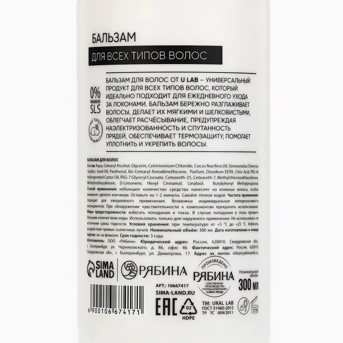 Бальзам для всех типов волос, 300 мл, аромат цветочный, U LAB — Характеристики