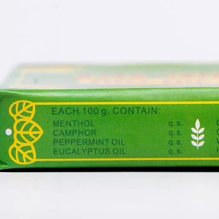 Состав: камфора, ментол, масло перечной мяты, масло эвкалипта, каепутовое масло, масло грушанки, гвоздичное масло, масло корицы, муравьиная кислота, парафин, вазелин.