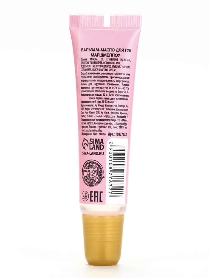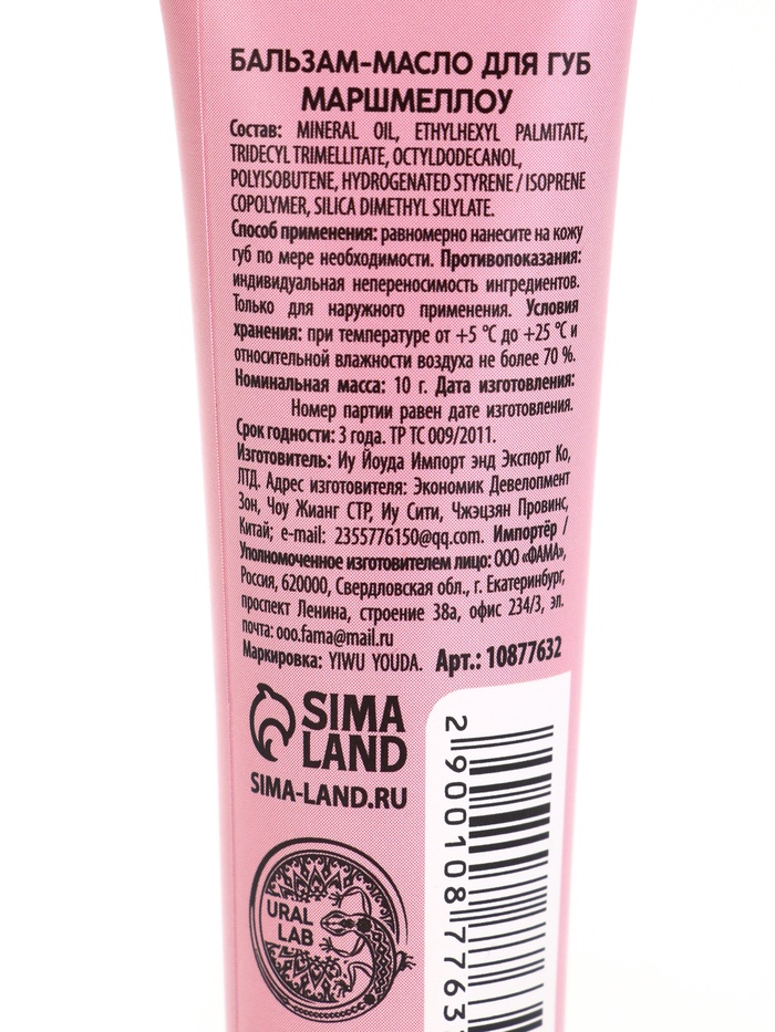 Бальзам-масло для губ, аромат маршмеллоу, 10 г, URAL LAB — Характеристики