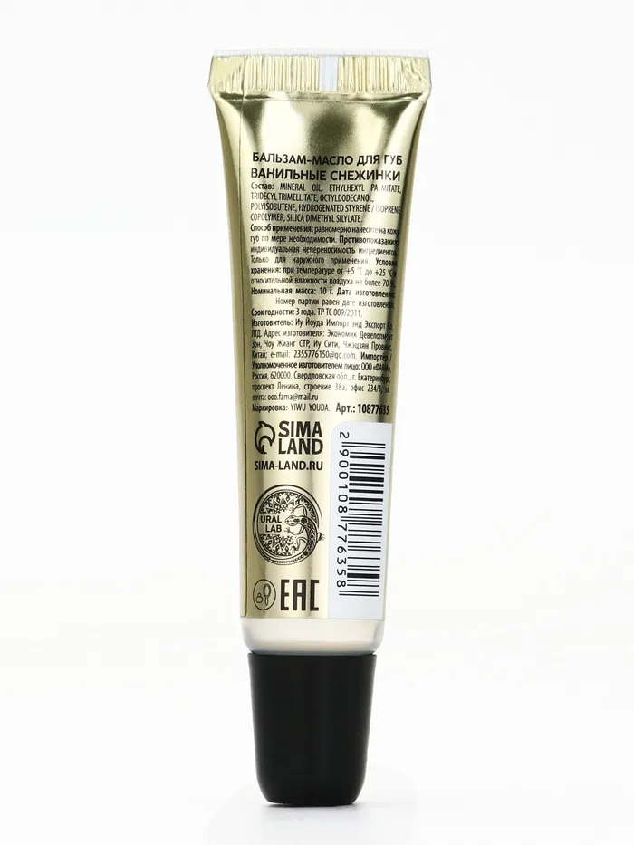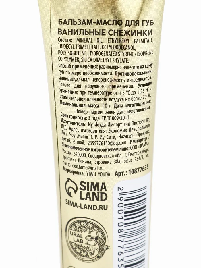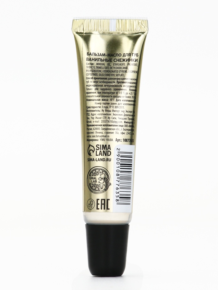 Бальзам-масло для губ, аромат ванильные снежинки 10 г, URAL LAB — Характеристики