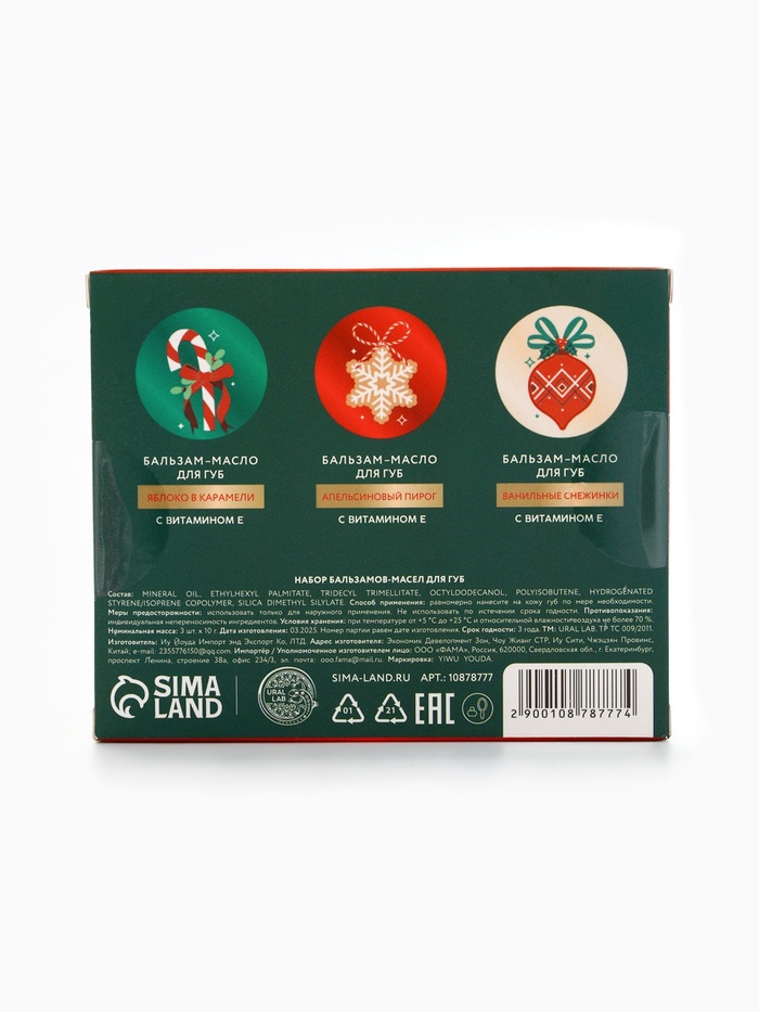 Бальзам - масло для губ Happy New Year, набор 3 шт.×10 г, URAL LAB — Характеристики