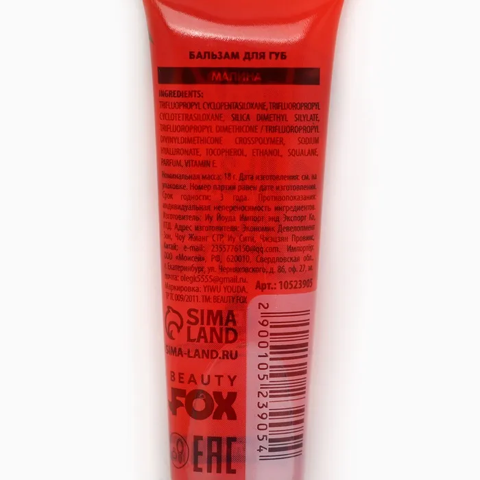 Бальзам-масло для губ с витамином Е, 18 мл, аромат малины, BEAUTY FOOD — Характеристики