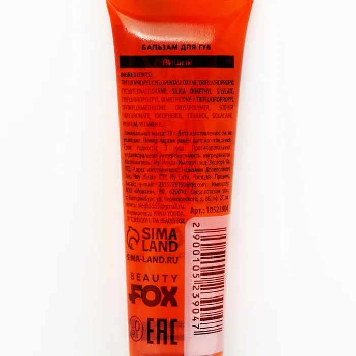 Бальзам-масло для губ с витамином Е, 18 мл, аромат вишни, BEAUTY FOOD — Характеристики