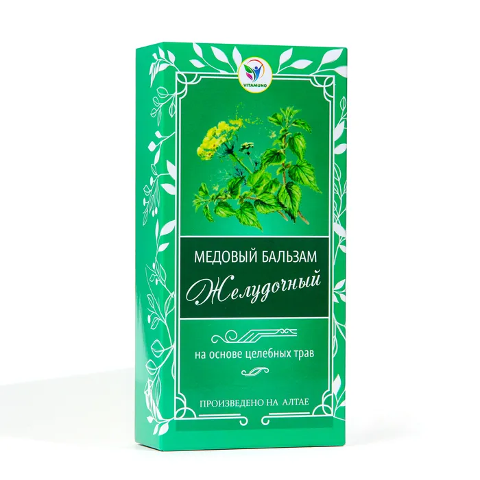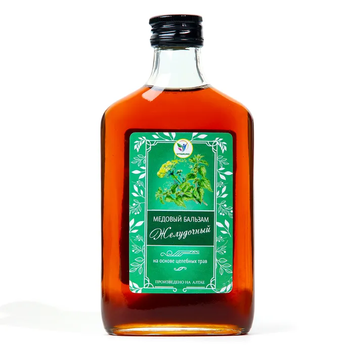 Состав: мёд натуральный алтайский, сахар, водные экстракты: чаги, хвоща полевого, зверобоя, тысячелистника, ромашки, календулы, корня валерьяны, корня аира, мяты, спорыша птичьего, крапивы, лимонная кислота.