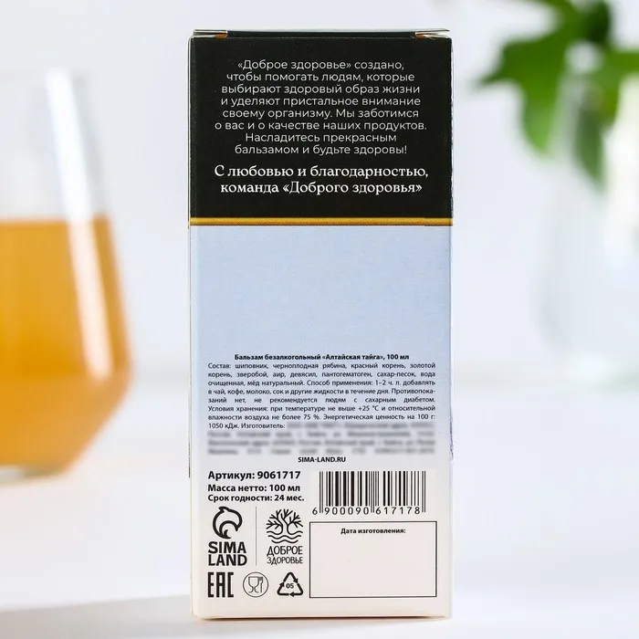Состав: шиповник, черноплодная рябина, красный корень, золотой корень, зверобой, аир, девясил, пантогематоген, сахар-песок, вода очищенная, мёд натуральный.