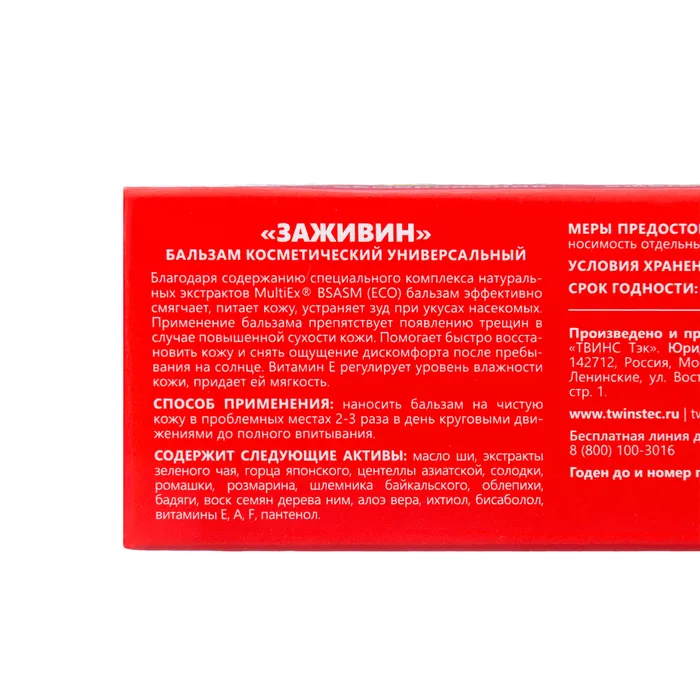 Способ применения: наносите бальзам на чистую кожу в проблемных местах 2–3 раза в день, распределяйте круговыми движениями до полного впитывания.