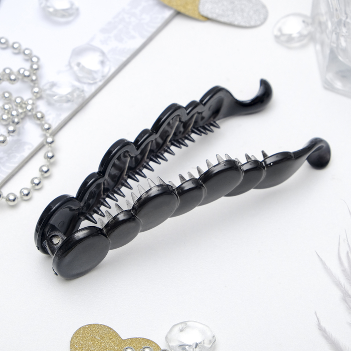 - Универсальный дизайн: чёрный цвет и классическая форма позволяют легко сочетать заколку с любыми нарядами и аксессуарами, идеально подчёркивая стиль и индивидуальность.