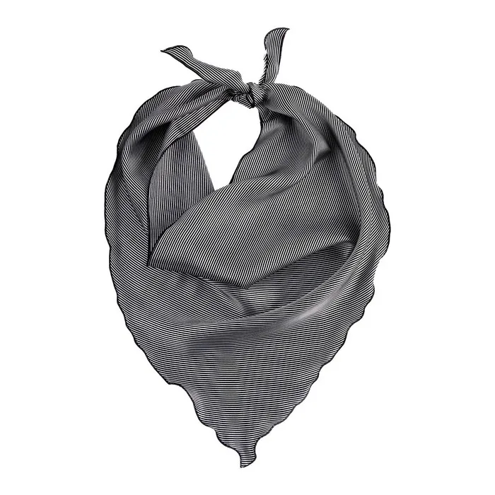 Классическая бандана в чёрно-белую полоску — универсальный аксессуар для любого гардероба. Изготовлена из прочного полиэстера, приятного на ощупь и долговечного в использовании. Бандана имеет стандартный размер 85 × 44 см, что позволяет носить её различными способами: на голове, на шее или на запястье.