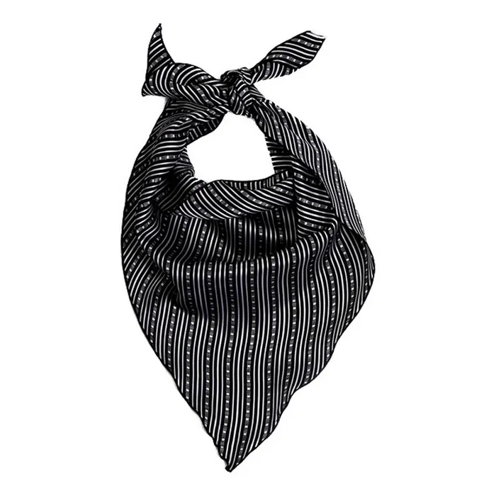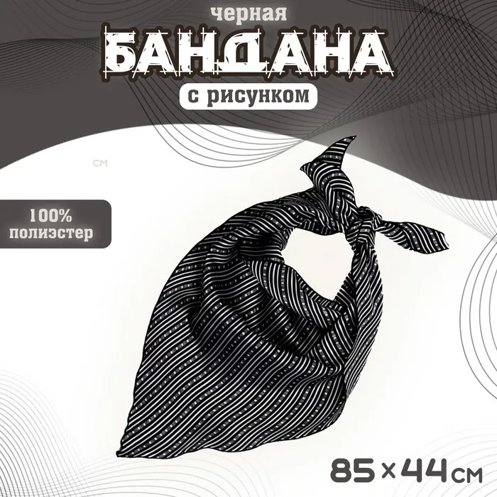 Бандана чёрная с рисунком — универсальный аксессуар для любого гардероба. Изготовлена из прочного полиэстера, приятного на ощупь и долговечного в использовании. Бандана имеет стандартный размер 85 × 44 см, что позволяет носить её различными способами: на голове, на шее или на запястье.