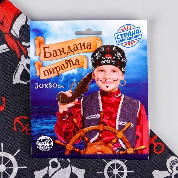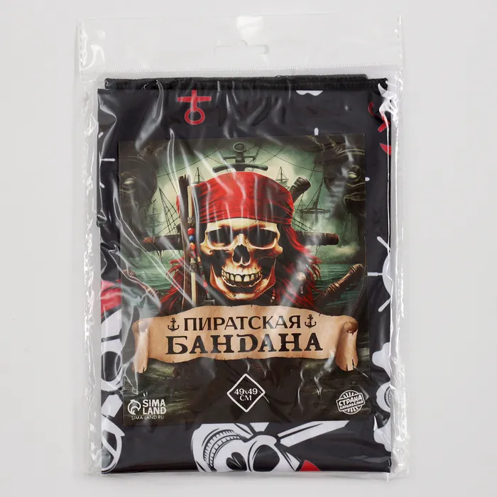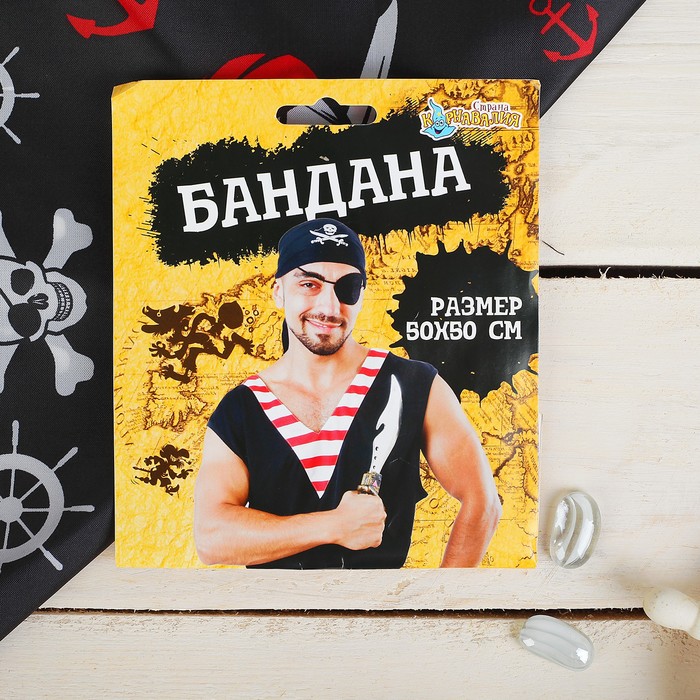 Бандана «Крутой пират», 50х50 см — одна из самых универсальных деталей гардероба. Используйте её как карнавальный аксессуар или для повседневного образа. Бандану можно надеть на шею, запястье или украсить ею рюкзак. Повязанная на лицо вещь прекрасно защитит дыхательные органы от пыли. Такой платок станет незаменимой деталью при занятиях спортом. И, конечно, он отлично выполнит свою основную функцию: оградит голову от солнечных лучей.