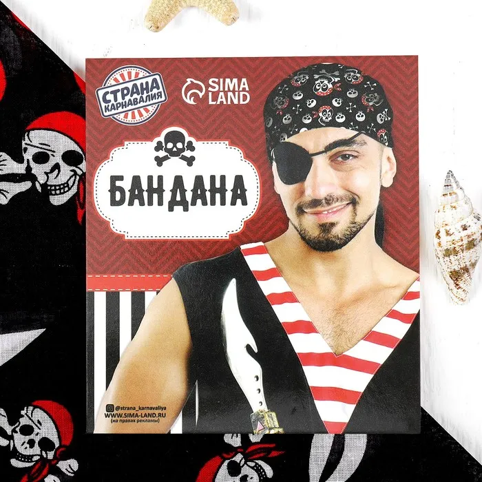 Бандана «Пират в шляпе», череп — одна из самых универсальных деталей гардероба. Такой платок уже давно перестал быть только головным убором — сегодня это стильный современный аксессуар и многофункциональная изюминка вашего образа. Бандану можно повязать куда угодно: на шею, запястье, рюкзак. Повязанная на лицо, она прекрасно защитит дыхательные органы от пыли. Такой платок станет незаменимой деталью при занятиях спортом. И, конечно, она отлично выполнит свою основную функцию: оградит голову от солнечных лучей. Вариантов сотни — выбирайте!