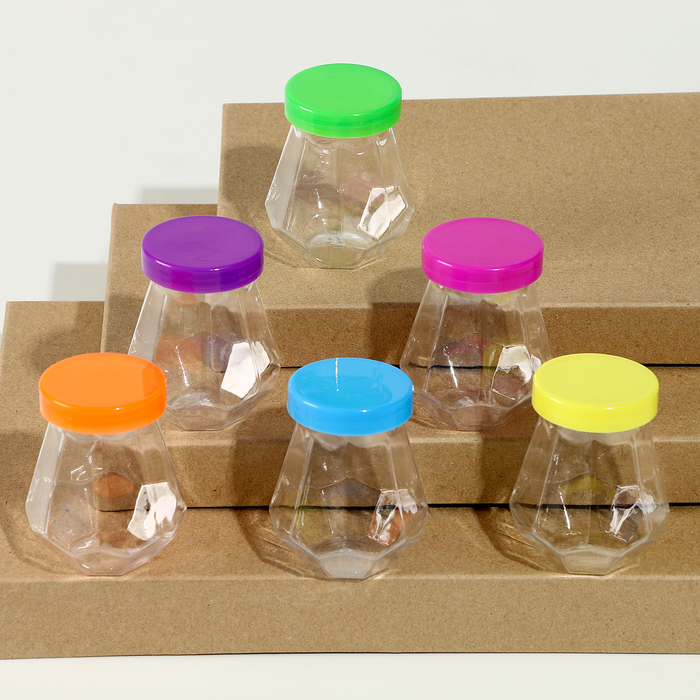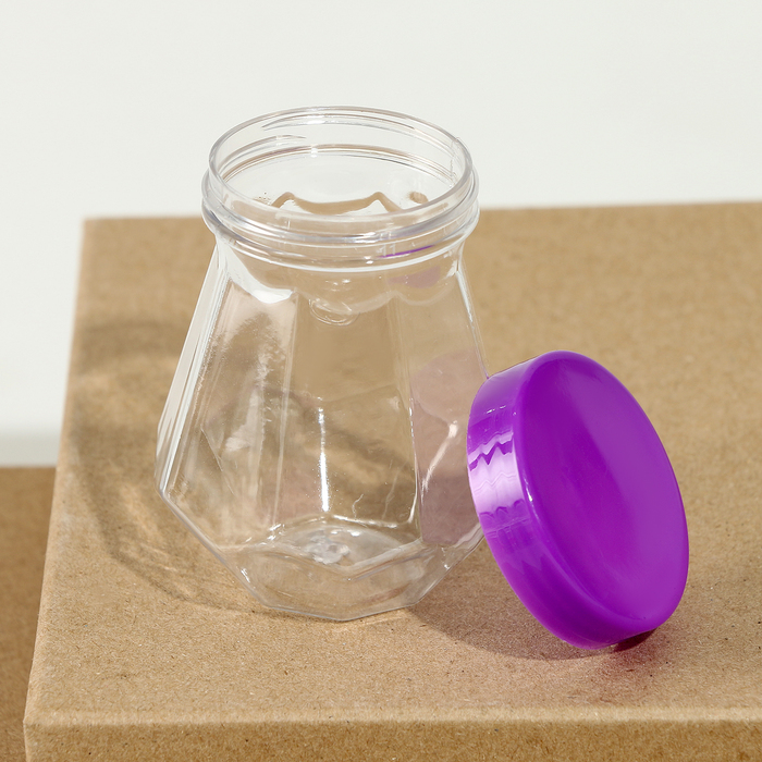Банка для хранения «Грани», с крышкой, пластиковая ёмкость, основа для творчества и декора, размер — 6 × 5 × 5 см, цвета МИКС — Характеристики