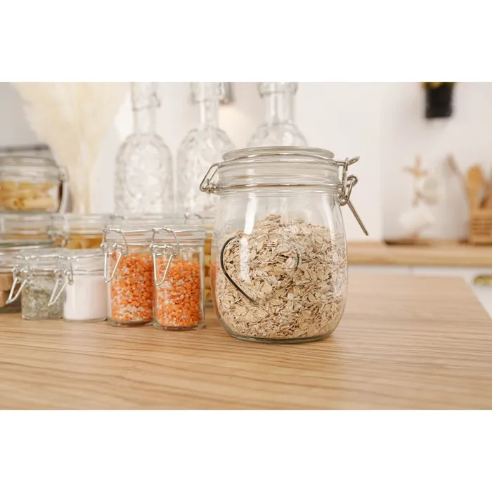 Банка стеклянная для хранения сыпучих продуктов — идеальное решение для хранения ваших продуктов! Она оснащена бугельным замком, который обеспечивает герметичность и предотвращает рассыпание продукта. Изготовлена из высококачественного стекла, эта банка прослужит вам долгое время. Благодаря прозрачному материалу вы всегда будете видеть, сколько продукта осталось внутри. Банка также подходит для использования в холодильнике и посудомоечной машине, что делает её ещё более удобной в использовании.
