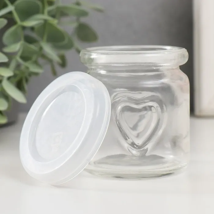 Банка для свечей с крышкой «Сердечко», стекло, прозрачная, 100 мл, 6×6×6.8 см