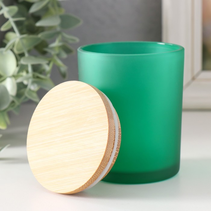 Банка для свечей стеклянная с крышкой «Зелёная полуматовая» 220 мл 7×7×8.4 см — Характеристики