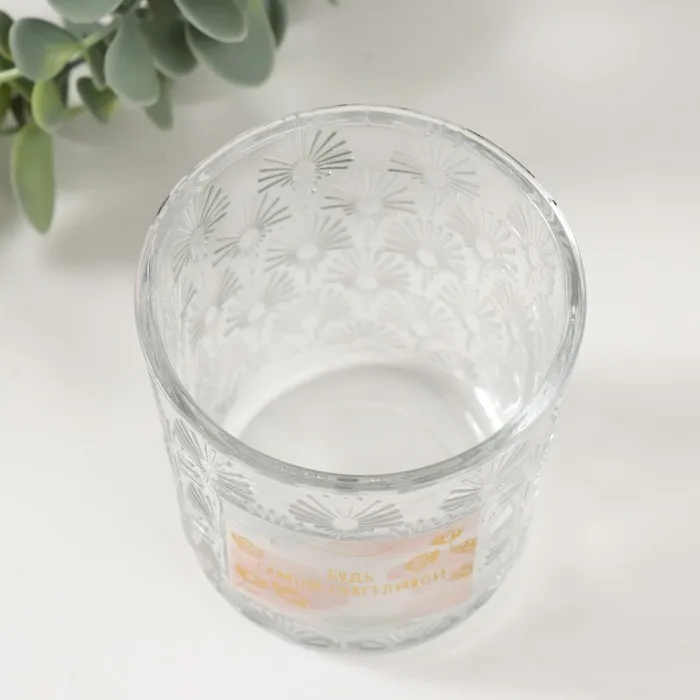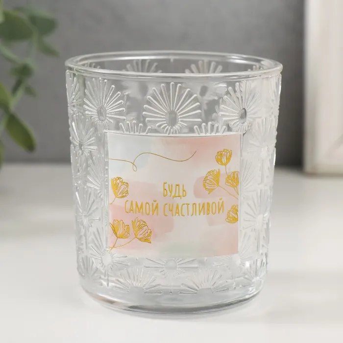 Банка для свечей стекло "Будь самой счастливой" прозрачная 200 мл 7,5х7,5х8,2 см