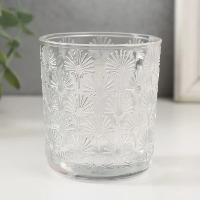 Банка для свечей стекло с крышкой "Цветочная" серая, круглая 5х7х7 см