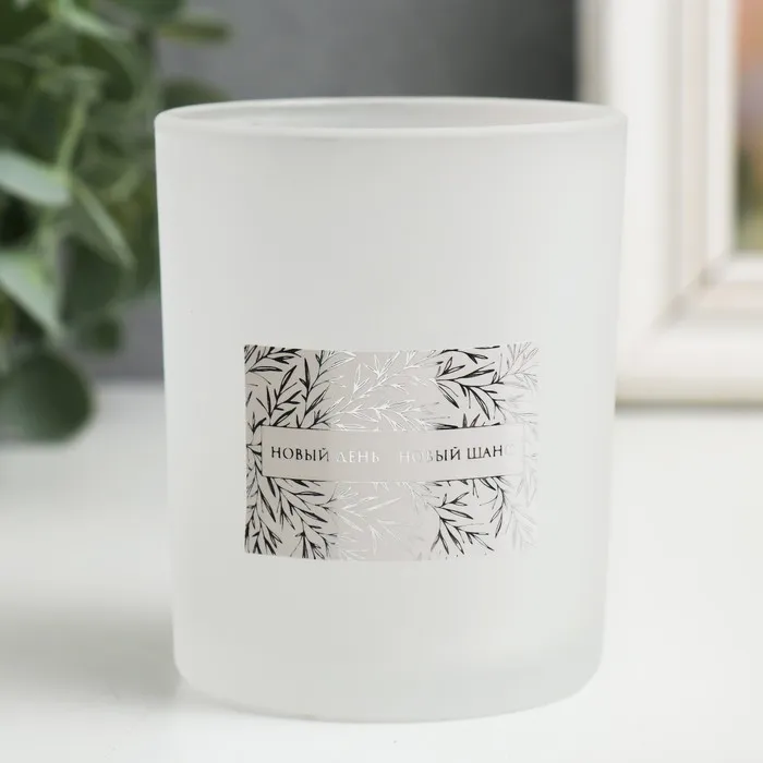 Банка для свечей стекло "Новый день - новый шанс" 220 мл белая, матовая 7х7х8,4 см