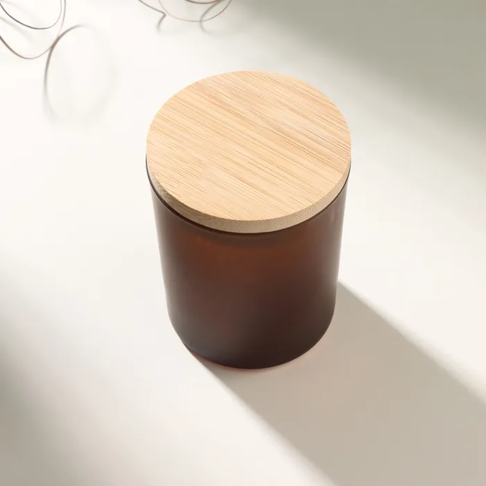 Банка для свечей стекло с крышкой "Коричневая полуматовая" 220 мл 7х7х8,4 см