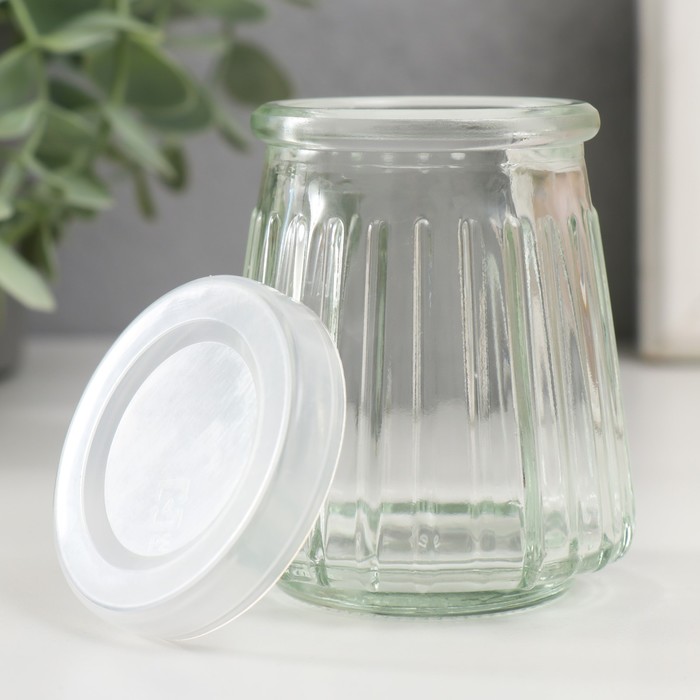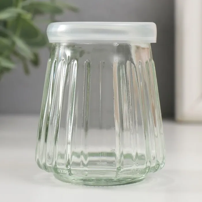 Банка для свечей стекло с крышкой "Ребристая" прозрачная 100 мл 6,5х6,5х7 см