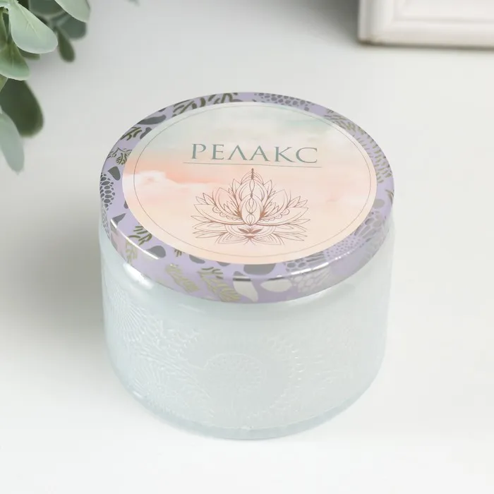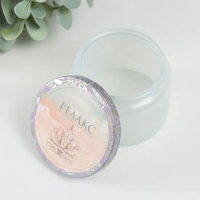 Банка для свечей стекло с крышкой "Релакс" 120 мл белая, круглая 5х7х7 см