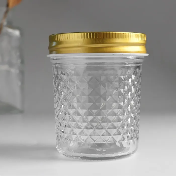 Банка для свечей стекло с крышкой "Ромбы" прозрачная 200 мл 7х7х8,5 см