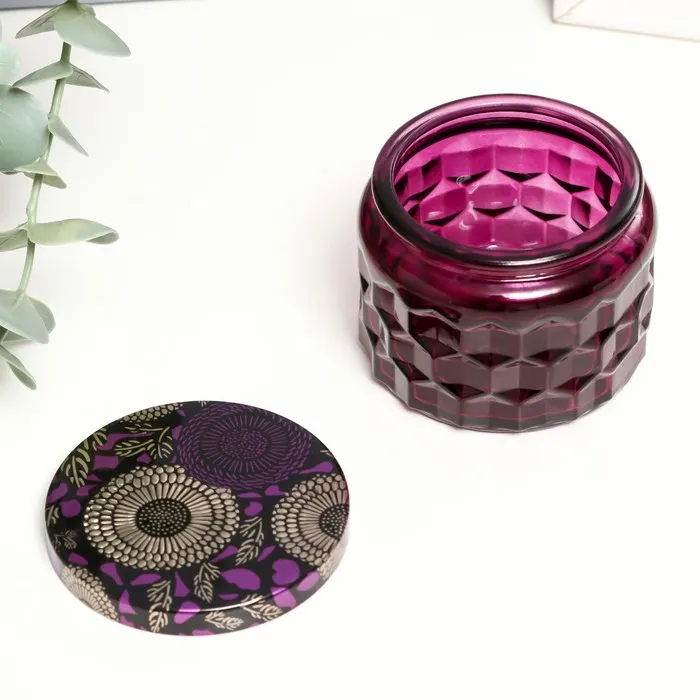 Банка для свечей стекло с крышкой "Соты" фиолет 5х7х7 см, МИКС — Характеристики
