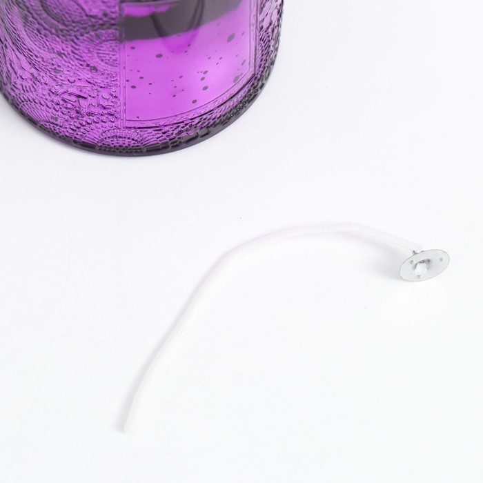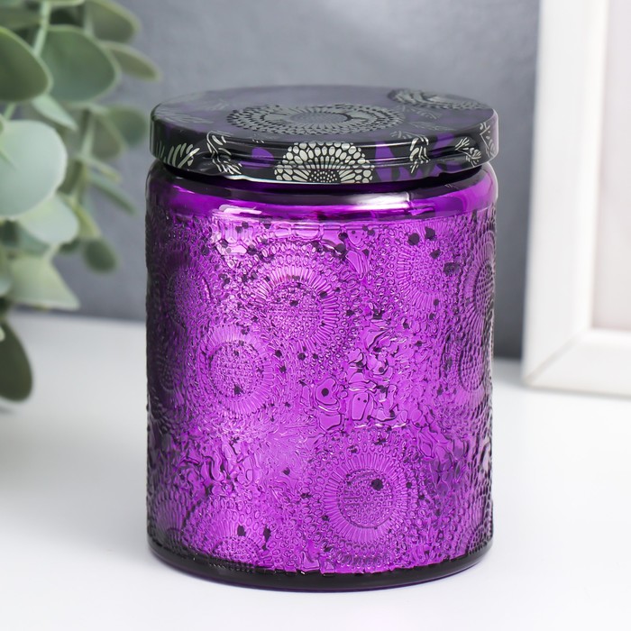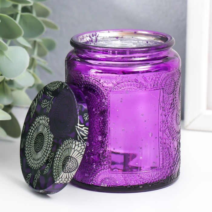 Банка для свечей стекло с крышкой "Цветочная" фиолет, цилиндр, гальваника 9х7х7 см