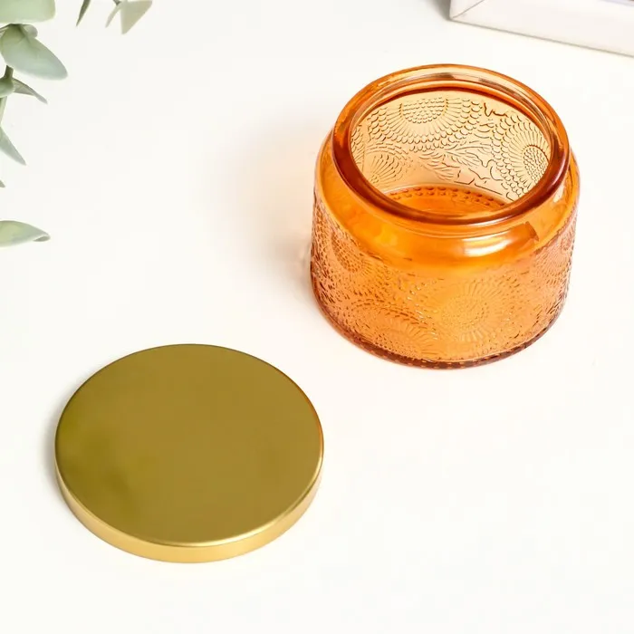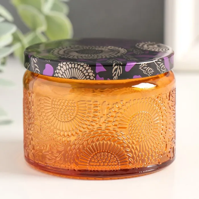 Банка для свечей стекло с крышкой "Цветочная" оранж, круглая 5х7х7 см, МИКС — Характеристики