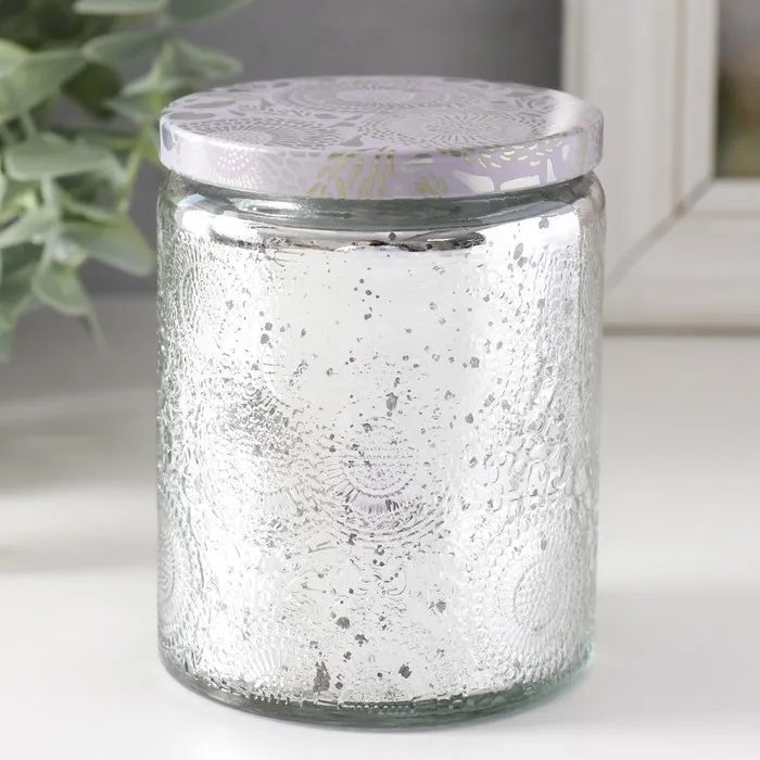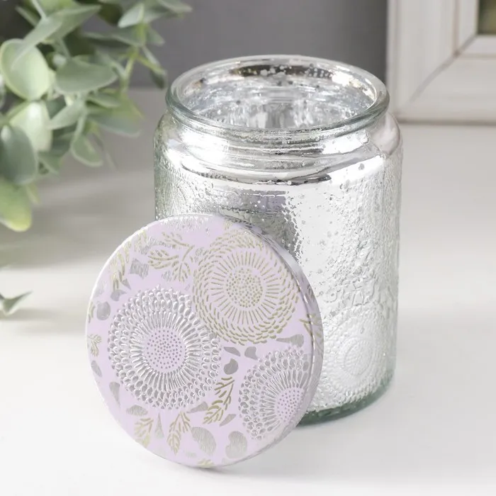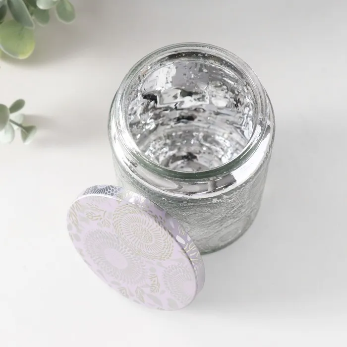 Банка для свечей стекло с крышкой "Цветочная" серебро, цилиндр, гальваника 9х7х7 см