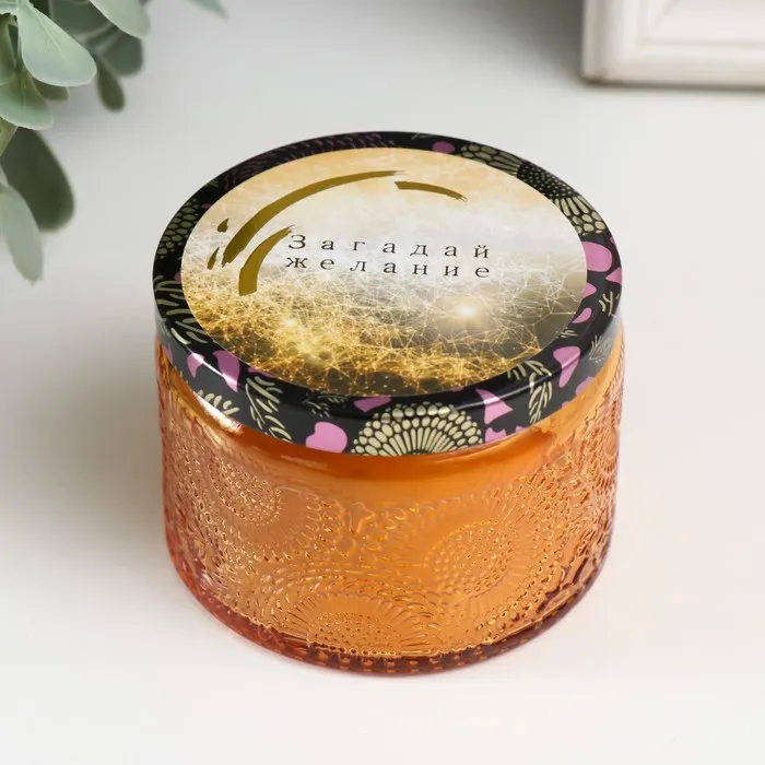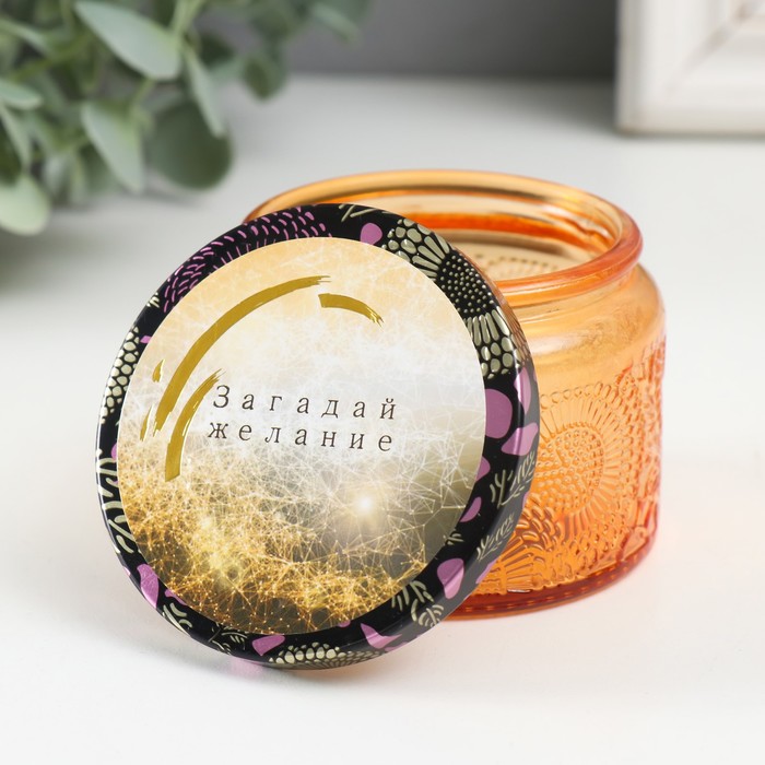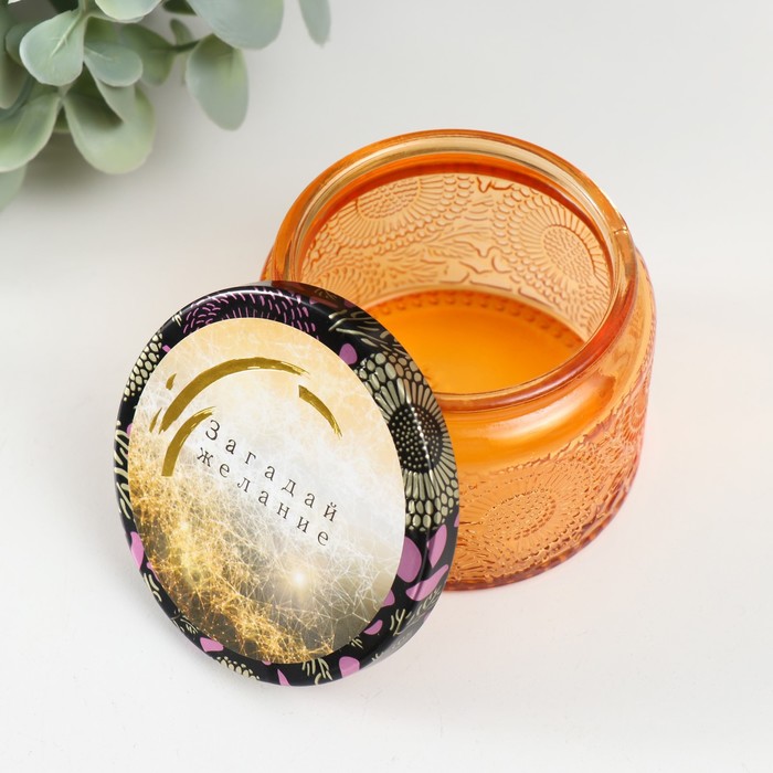 Банка для свечей стекло с крышкой "Загадай желание" 120 мл оранжевая, круглая 5х7х7 см